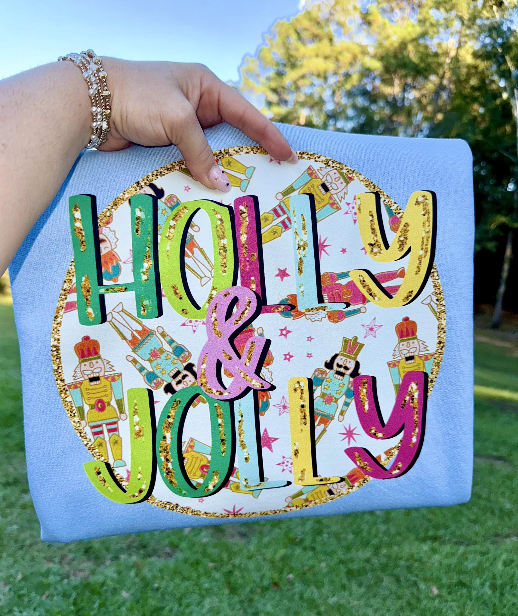 Blue Holly Jolly Nutcracker Christmas Comfort Colors Graphic Tee
