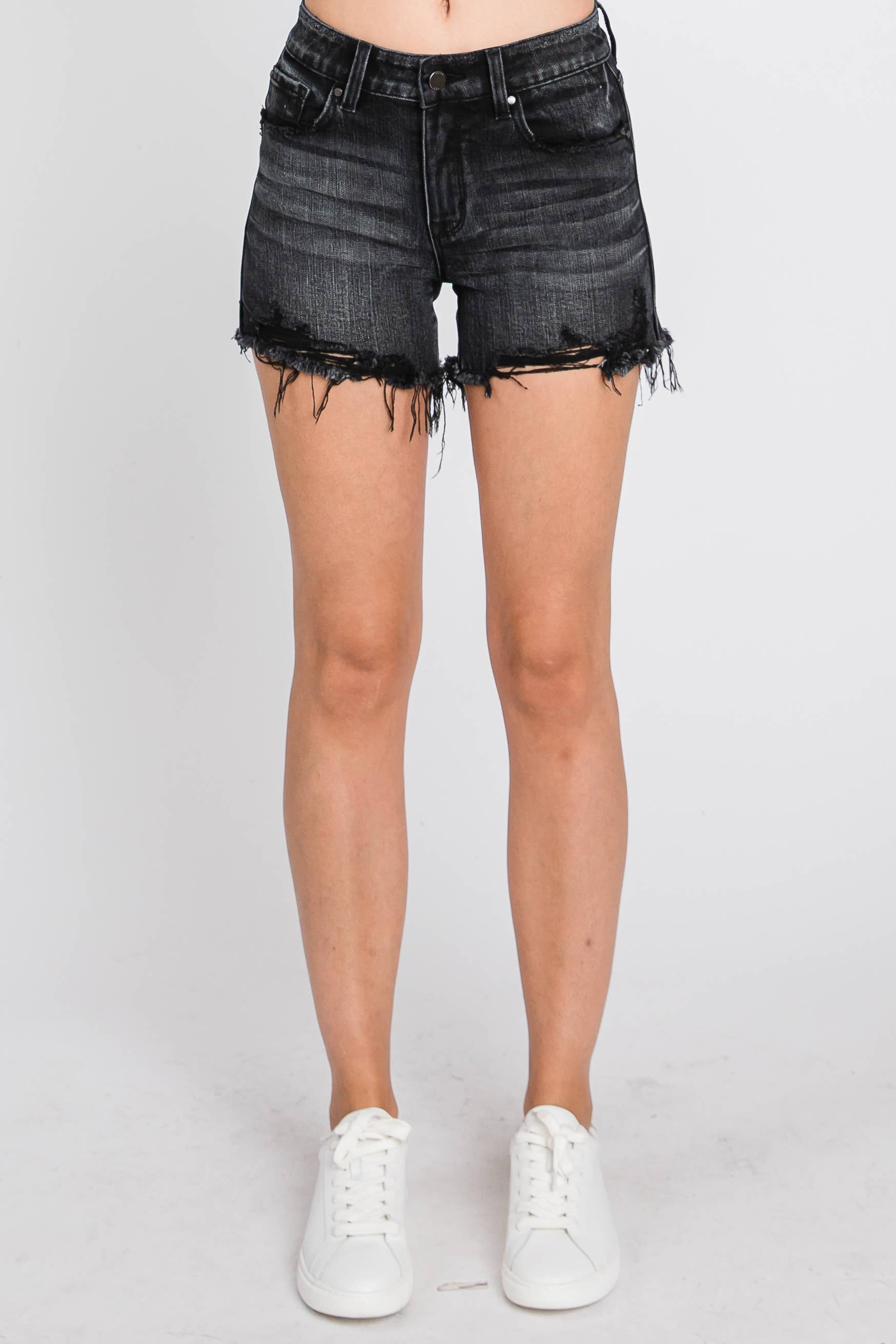 HIGH RISE COMFORT STRETCH SHORTS W/ FRAYED HEM